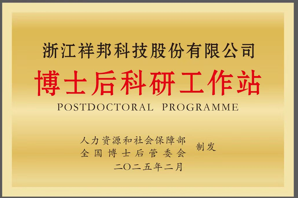 2025年2月經(jīng)國家人社部、全國博士后管理委員會(huì)聯(lián)合批準(zhǔn),祥邦科技正式設(shè)立國家級(jí)博士后科研工作站。這一里程碑距2023年3月建成浙…